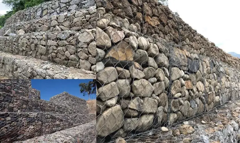 Gabion Boxes are rectangular elements made of double twisted hexagonal mesh filled with stones. They comprise of rectangular baskets connected together and placed on site.